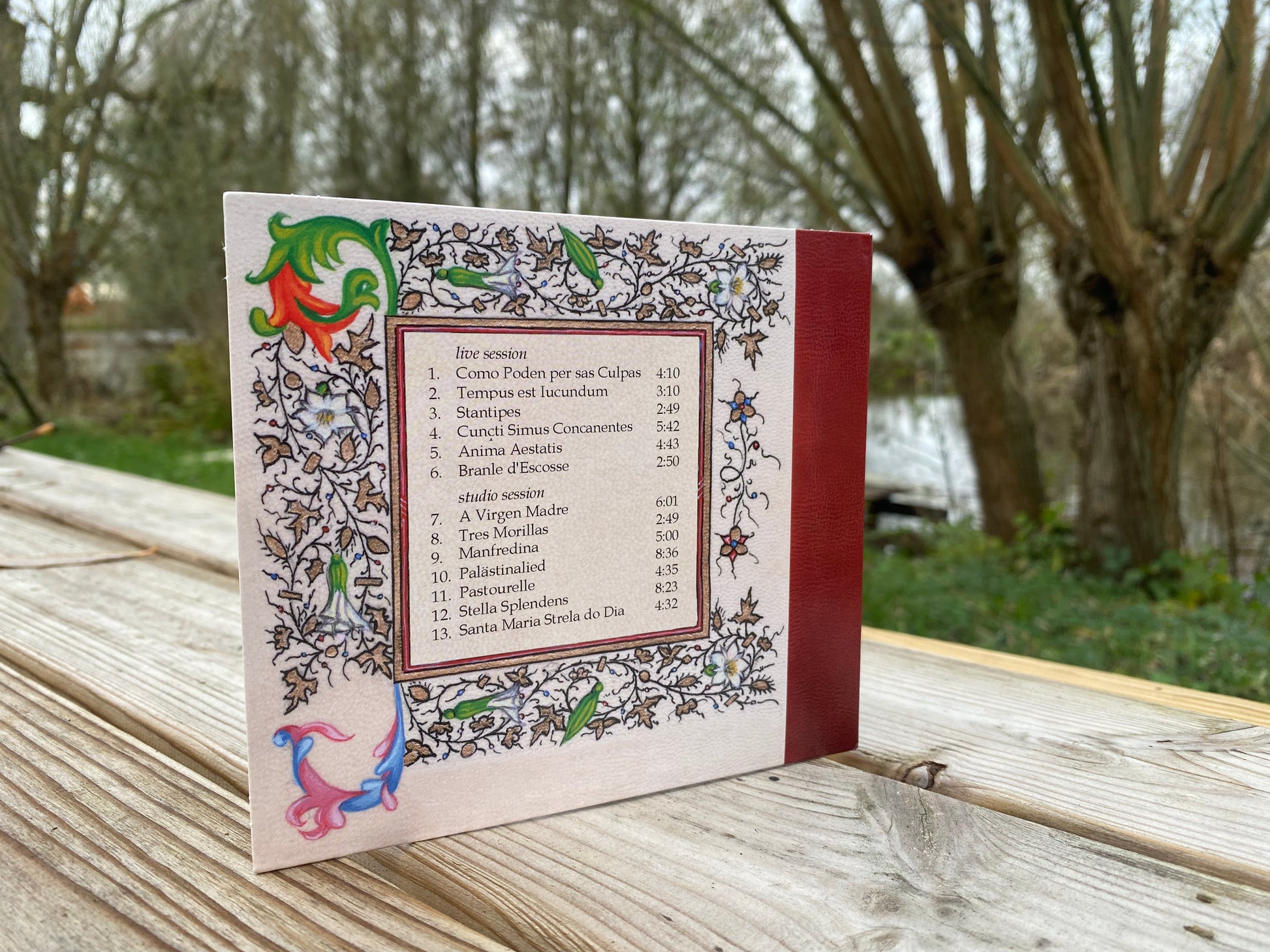 Among their great inspirational manuscripts are the Cantigas de Santa Maria. These songs were collected and (most probably) partly written by King Alfonso X of Castilia y Léon, also known as 'el Sabío', the Wise (1221-1284). His court was well known for the prosperous culture in which Moors, Jews and Christians all participated and respectfully worked together. Another inspiration is a famous red songbook from Cataluña that goes by the name Llivre Vermell de Monserrat. It was found hidden in a wall in the impressive church on a holy mountain build upon an ancient Cathar sanctuary. This book suggests alternative lyrics for the inappropriate songs that were sung by pilgrims within the churchwalls during sleepovers. The songs of the Carmina Burana are, contrary to most songs from the 12th or 13th century, mostly critical towards society or very much worldly in a frivolous manner. There is so much treasure to find on the anciant parchments, we still have a lot of work to do. Do check out our other albums!