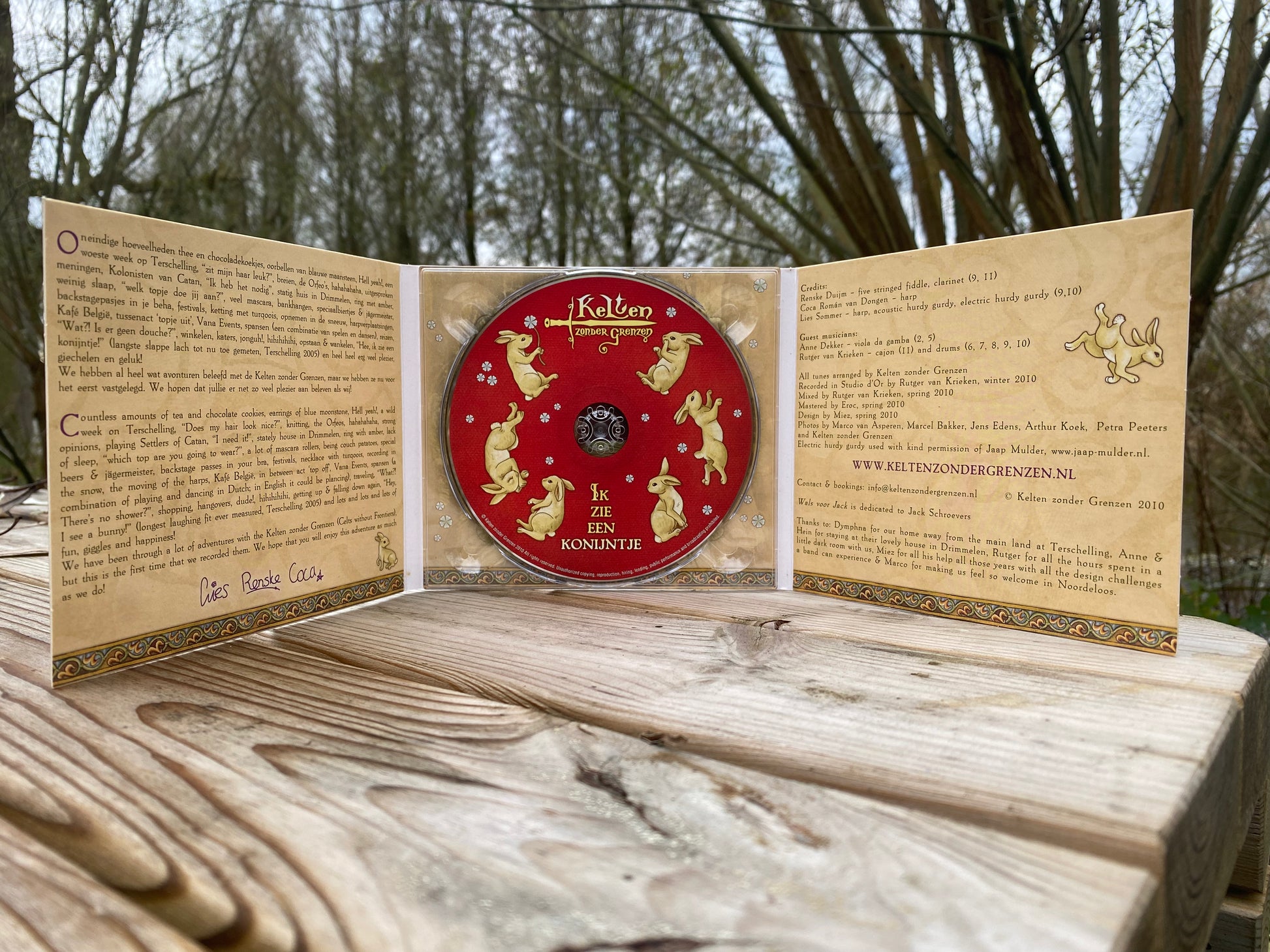 Enjoy this folk CD with a unique sound! Two harps, a hurdy hurdy, fiddle, clarinet and drums, with a special guest appearance of a viola da gamba. These tunes are suitable for balfolk dancing, but can also be perfectly enjoyed sitting down with a cup of tea or a glass of wine.