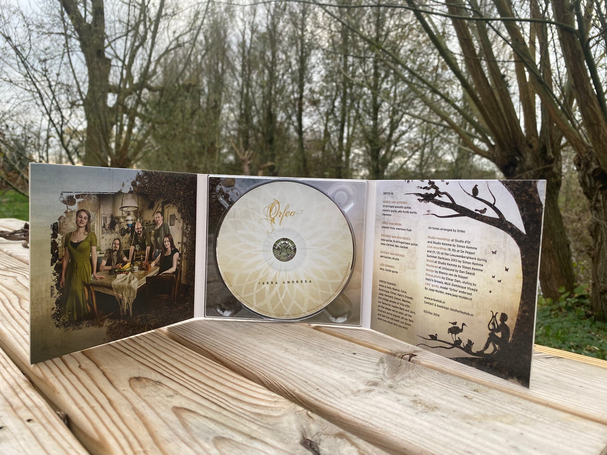 This is the second album by the Dutch balfolk group Orfeo. The Orfeos were (and are) good friends and could often be found in their rehearsal space in Noordeloos, where they made music, drank tea and beer, and sat around the campfire. The title, Terra Amorosa, is a fictional Latin name inspired by Terra (earth) and Amor (love). With this album, they honored their roots and the fertile soil in which their music grows.