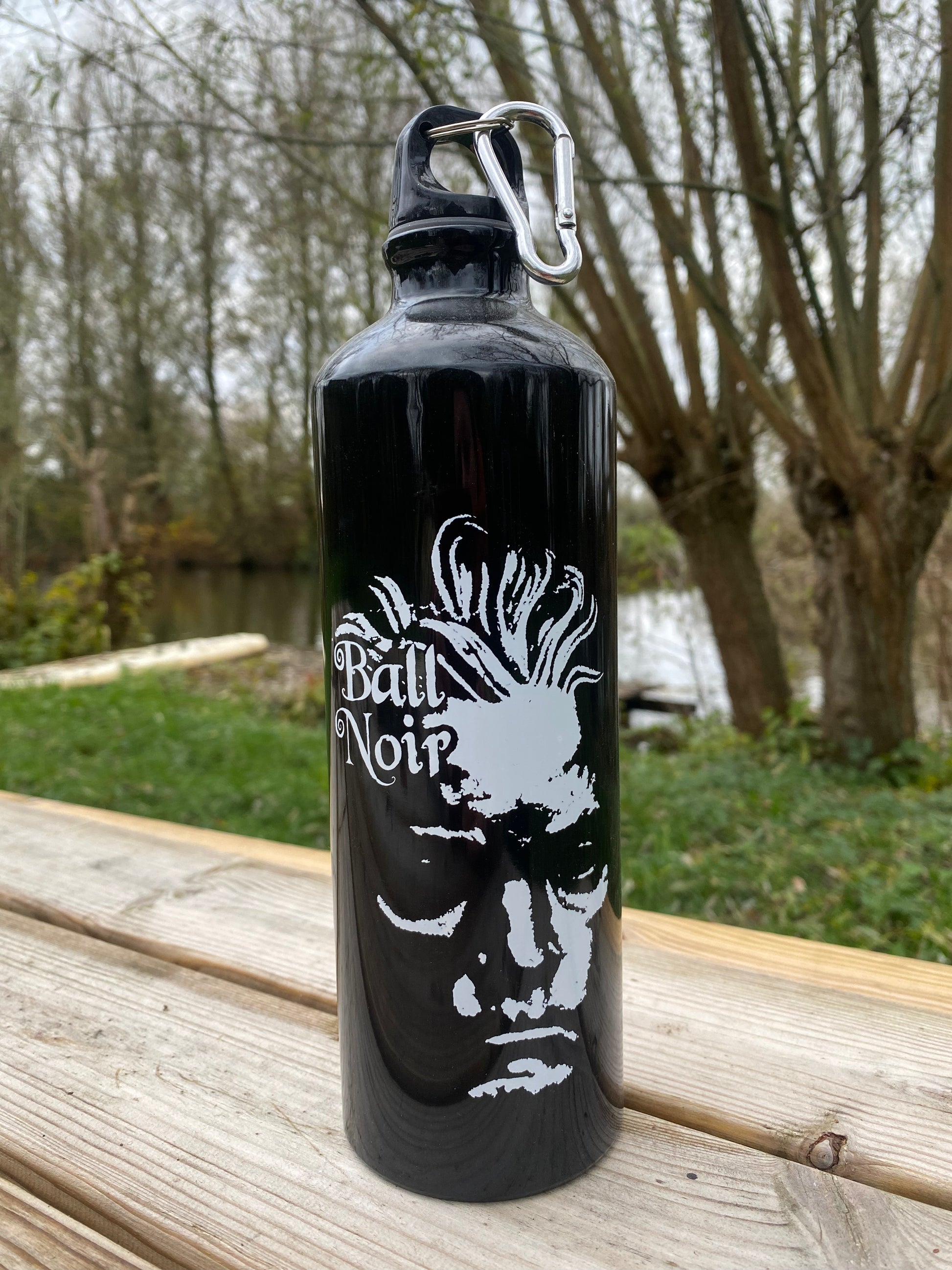 Aluminum water bottle. Light and sturdy.
